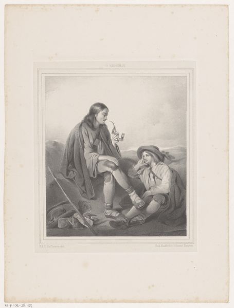 C.F. Høyer created this artwork, Sulmalla Venter Forgæves Cathmor Hos Den Gamle Digter Clonmal, For Hvem Den Døde Cathmors Ånd Viser Sig, with oil on canvas. The shadowy interior of a cave dominates, framing two seated figures, and evoking a sense of somber anticipation. Høyer masterfully employs light and shadow to guide our attention. The subdued palette, punctuated by flashes of color in the figures' garments, heightens the drama. The composition is structured around the gaze and gestures of the figures, creating a visual dialogue across the pictorial space, drawing us into an investigation of the artwork's narrative. This painting operates within a system of signs. The cave becomes a symbolic space, representing the threshold between worlds, while the characters represent loss and the persistence of memory. Høyer's orchestration of form and color challenges fixed notions of reality, suggesting an intermingling of material and spiritual dimensions. Ultimately, the artwork invites ongoing speculation, recognizing art's capacity for continuous re-interpretation.