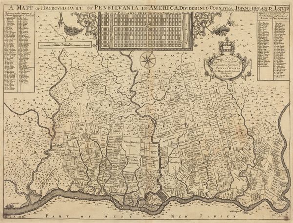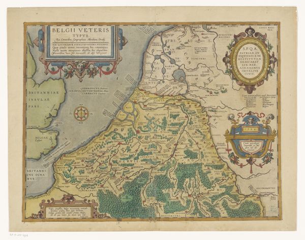 Curator: What a find! We’re looking at a fascinating map— “Kaart van Friesland”—thought to have been made sometime between 1618 and 1665 by an anonymous artist. It's currently housed in the Rijksmuseum. Editor: Immediately, I’m struck by the sheer density of information packed into this print. It feels like an attempt to capture a world, or at least a province, in its entirety. So much detail, it's a marvel someone managed to capture all of that by hand with ink. Curator: It’s a masterful engraving, that’s for sure! You see the fine linework giving shape to the Frisian landscape. And if you look along the borders of the piece you will find charming cityscapes framing the central map of the province, little windows into life at that time, almost like annotations. Editor: And note the strategic positioning of maritime activities—sailing ships traversing waterways! What can they be importing or exporting? It paints a vivid picture, though perhaps sanitized. It is really telling of the prominence that sea travel played in the time the artwork was made and its perceived social importance, as such prominence may distract from some important points such as the land-locked activities, perhaps? Curator: Absolutely! And, in the four corners of the piece are these beautifully rendered figures, almost archetypal representations of local people, dressed in what I imagine are their traditional garments. Each tiny rendering seems to speak to local customs and trade. I feel it invites reflection on Friesland and its population at the time. I just want to invent stories for each of them... Editor: These are such compelling considerations to have. Looking at the clothing and landscape features might help one see Friesland at a point of self-discovery. But perhaps in the selection, as it depicts clear scenes of Dutch life, it promotes Dutch colonial ideas on other territories too? Curator: Yes, definitely food for thought as you contemplate it, and as the Dutch saying goes "it tickles your fantasy"! Editor: What a fascinating look into how history and artistic expression intersect, it makes me ponder the nature of identity itself.