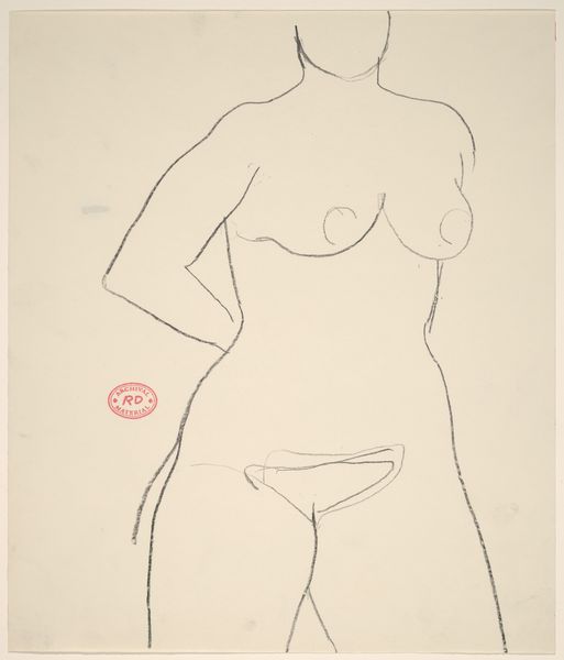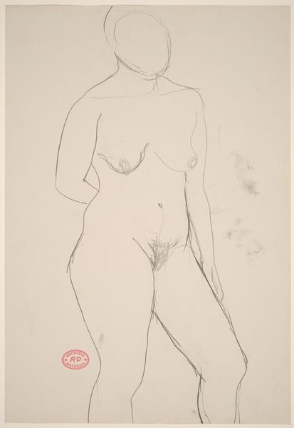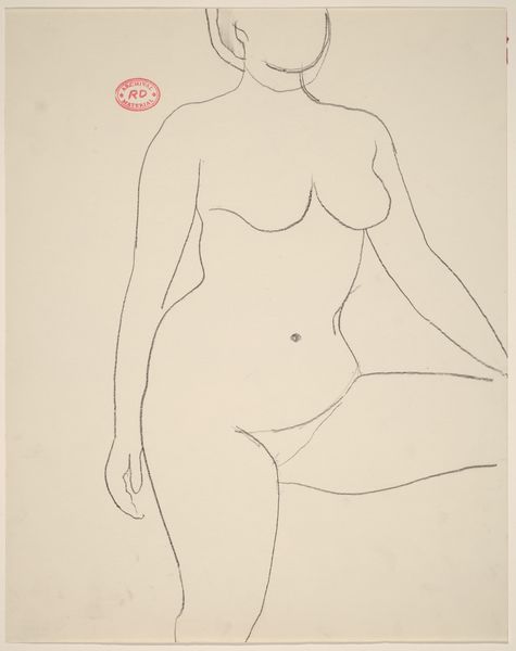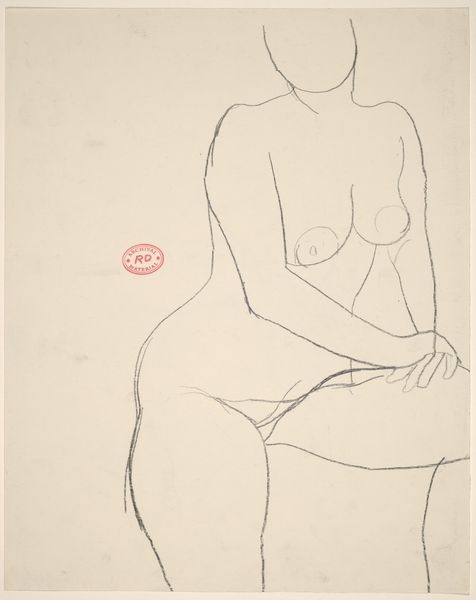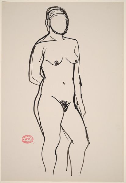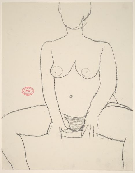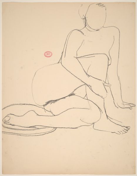 Editor: This is an untitled drawing by Richard Diebenkorn, made sometime between 1955 and 1967. It’s a seated nude figure, created with simple lines. The economy of line gives it an immediacy, almost like a sketch, but it also feels carefully observed. What do you see in this piece? Curator: I see a focus on the materiality of the process. The drawing itself, the specific graphite used, the paper chosen, those inform our understanding more than any illusion of the figure. How does the weight of the line itself, thin in places, bolder in others, affect how we read the figure's weight, its presence? Editor: That's interesting. I hadn't thought about the *thickness* of the line as being important. Curator: Consider this alongside Diebenkorn’s other work, his paintings. He often used layers of paint, reworking surfaces. Is this drawing also about process? About the act of observation and mark-making, rather than pure representation? Think about how readily available inexpensive paper was at the time as compared to expensive oils. Who has the ability to explore painting as compared to drawing? Editor: So you’re saying that the drawing might be about access and labor as much as the nude figure itself? Curator: Precisely. The rapid, somewhat raw line work challenges the classical ideal, highlighting the accessibility of the medium itself. What sort of visual statements can an artist make using common materials? Editor: That definitely gives me a new way to think about Diebenkorn and this drawing. I was so focused on the figure itself. Curator: Absolutely. Considering the materiality of art changes the power dynamic of access to its consumption and production.