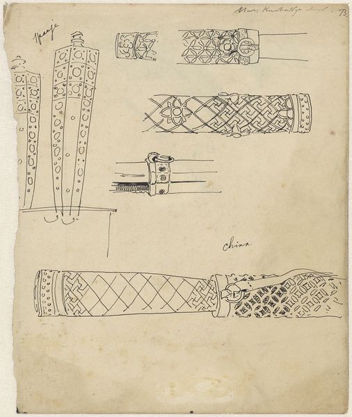 Ella Josephine Sterling made this study of an Infant's Dress Yoke and Mull Cup in 1936, using pencil on paper. I love the way she approached the page, not as a technical drawing so much as a field of decorative invention. Look at the way she uses the pencil: the fine lines, the shading, the delicate touch. You can almost feel the softness of the fabric she’s depicting. The precision in rendering each stitch and fold, it's almost obsessive, compulsive. It reminds me of Agnes Martin's grids, how a seemingly simple structure can contain so much subtle variation and emotion. The way she isolates these elements—a yoke, a cup, a fragment of lace—it's like she's dissecting the very idea of adornment. And that little splash of red in the corner, is it blood? Or a rogue dab of paint? It’s like a tiny rebellion against the pristine order of the drawing. It reminds me of a Cy Twombly, how a seemingly random gesture can disrupt and energize the whole composition. What a wonderful piece!