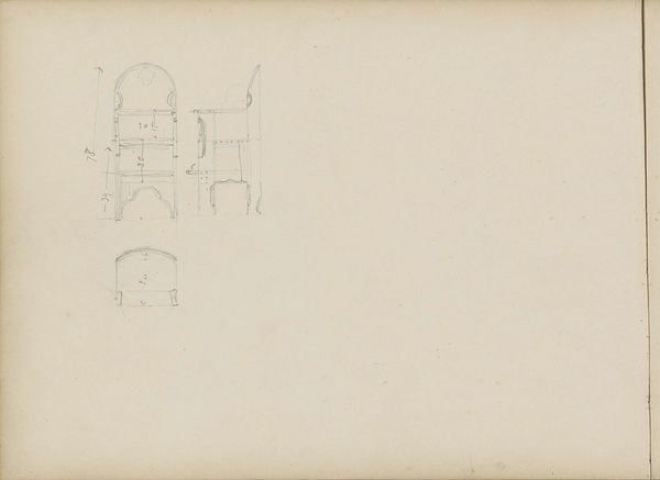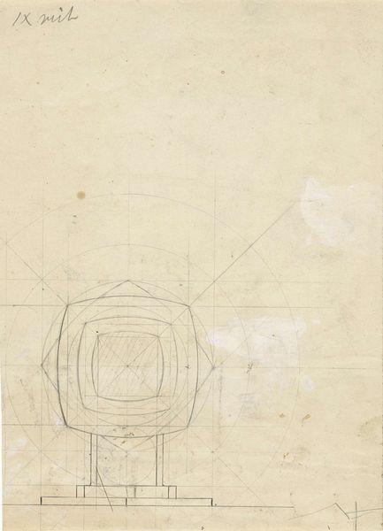 Curator: Gazing at this piece, it's all about order and restraint, isn’t it? Editor: Absolutely. When I look at this geometric drawing on paper, I sense a peculiar stillness. It feels like a blueprint of the soul, mapped out in severe lines. Curator: This fascinating design, created by Antoon Derkinderen in 1912, is actually titled "Ontwerp voor een bankbiljet," a study for a banknote. It's fascinating to consider the art involved in something as utilitarian as currency. Editor: So, money as a mandala! I see repeating forms, especially the circle. Since the dawn of time, the circle symbolizes totality, the Self in Jungian terms, perhaps Derkinderen wanted to embed a little bit of the infinite in our daily transactions. A subtle wish for wholeness, wouldn't you say? Curator: Or perhaps a desire for stability and trustworthiness in an age of change. What seems like simple shapes can embody grand ambitions, right? And the meticulous nature of the lines! As an artist, it reminds me how control can both create order, but also stifle genuine expression. There's something so contained in these shapes, it gives me the chills! Editor: Chills, yes! Each form here, the square, the curve, seems to be caught between something familiar and something disturbingly alien. The tension is created through subtle asymmetry. The effect leaves you off balance. Think about the historical moment: the world on the brink of the first global conflagration. Money about to become worthless, social orders toppled. Is Derkinderen reflecting such a hidden trauma, hidden anxiety? Curator: That's a powerful observation. It's hard to unsee the potential unease once you think about it in relation to its historical time. Well, seeing it that way just added new shades to the piece for me! Editor: For me as well. The symbolic value has come into focus. Curator: And I am more than intrigued by how a draft can evoke the world at war.