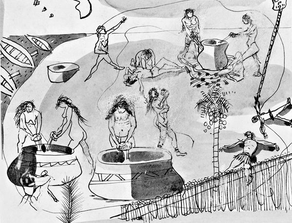 Jury Annenkov created this portrait of S.V. Balabanov using graphite pencil, likely in the first half of the 20th century. Annenkov's background as a Russian modernist is evident in this piece, reflecting the tumultuous social and political changes of his time. The fragmented, almost cubist portrayal of Balabanov suggests a multifaceted identity, perhaps mirroring the subject's complex role within the shifting social landscape of post-revolutionary Russia. Balabanov is portrayed smoking, surrounded by images of women. The act of smoking has historically been associated with masculinity, while the inclusion of images of women brings forth questions of gender dynamics and representation. These elements might allude to the subject's personal life, interests, and the societal expectations placed upon him. Annenkov was known for capturing the psychological depth of his subjects, and here, he invites us to consider how individual identities are shaped and perceived within a specific historical and cultural context. The emotional weight of the portrait lies in its ability to evoke a sense of introspection, prompting us to reflect on the complexities of human existence.