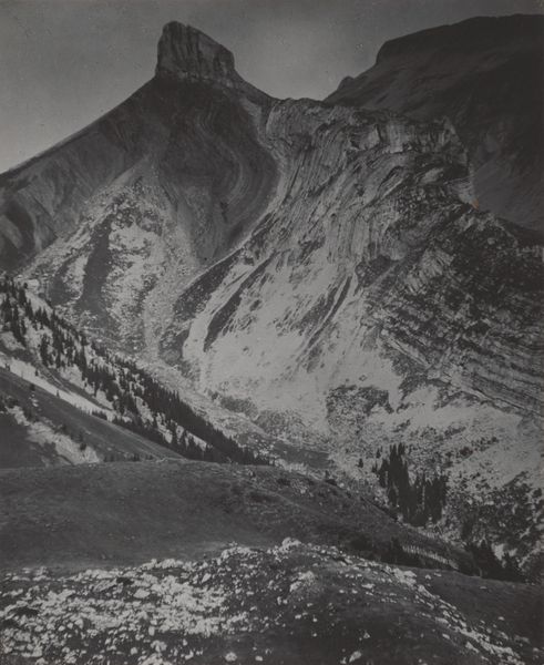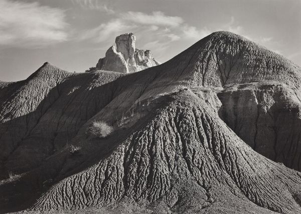 This photograph, Manly Beacon, Death Valley National Monument, California, was made by Ansel Adams using gelatin silver. Look how Adams allows the tonal range to articulate the forms. He’s not trying to represent the thing, but instead create a feeling. Light emanates from the peaks and crevices, giving a sculptural quality to the landscape. Adams builds up layers of blacks, whites, and grays, through the silver, to create deep contrast. In the foreground, the texture is velvety, and seems so close you can almost touch it. The surface is activated with light, the texture of the rock is palpable. I love the way the peaks in the background feel softened by the distance, like memory. It makes me think of Georgia O’Keefe, another artist who spent time in the desert, grappling with the relationship between light and land. Art gives us an opening, not an answer.