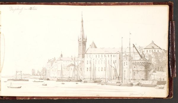 Editor: This is Adrian Ludwig Richter’s "View from the Brühl Terrace," showing Dresden. It looks like a simple pencil drawing, but the detail is impressive. What strikes you about this piece? Curator: I’m drawn to the labor evident in Richter’s close observation and detailed rendering of the scene. Think about the social context: who had the time and resources to create and consume such detailed views? The materiality of the pencil and paper also speaks volumes. Editor: So, it’s not just about the pretty scenery? Curator: Not at all. It’s about the means of production, the consumption of idyllic views, and the social hierarchies embedded within. Consider, for example, how the print might have circulated and been consumed. Editor: That really changes how I see it. Thanks!
