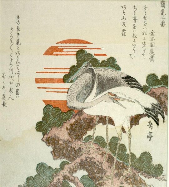 Curator: Katsushika Taito II's "from the illustrated book 'KachÅ gaden'" presents a bird perched amidst cherry blossoms. There's a delicate balance between detailed observation and symbolic representation, wouldn't you agree? Editor: It’s compelling, the way the muted palette evokes a sense of serenity, almost as if we’re intruding on a private moment of quiet contemplation, but what is being contemplated? Curator: Consider the meticulous lines defining the bird's feathers versus the softer rendering of the blooms—a clear structural contrast highlighting the interplay between the natural elements. Editor: And what of the societal context of appreciating birds and flowers in art? It speaks to privilege and the leisure to observe nature, a world away from the realities of the laboring classes. Curator: Indeed. But the very act of observing—of selecting and arranging these elements—elevates the ordinary into the realm of aesthetic experience. Editor: An aesthetic experience often built on the backs of others, but yes, the artistry does invite reflection on human relationships to the natural world. Curator: It provides a moment of respite. Editor: Perhaps. It certainly gives us much to consider.