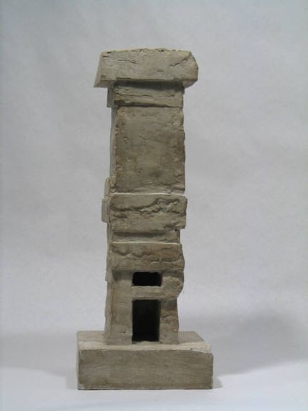 Curator: Here we have Jacques Lipchitz’s sculpture, David and Goliath, on a Column, part of the Tate collection. Editor: It has a primal, almost brutal feel to it, doesn’t it? The rough texture amplifies the struggle. Curator: Indeed. Lipchitz reduces the biblical narrative to its raw essence through form and materiality. Notice how the figures are fused, almost indistinguishable. Editor: It's fascinating how the column itself becomes a silent witness, or perhaps even a participant, elevating the drama. Columns often symbolize strength, but here, it seems to magnify the violence. Curator: The limited color palette—earthy tones—focuses our attention on the interplay of positive and negative space, the pushing and pulling of forms. Editor: The David and Goliath story has always been about the triumph of the underdog, of course. But here, Lipchitz seems to blur those lines, presenting a more ambivalent, unsettling vision of power. Curator: A potent reminder that victory can be a brutal, complex thing. Editor: Yes, and that symbols continue to morph and reflect us across time.