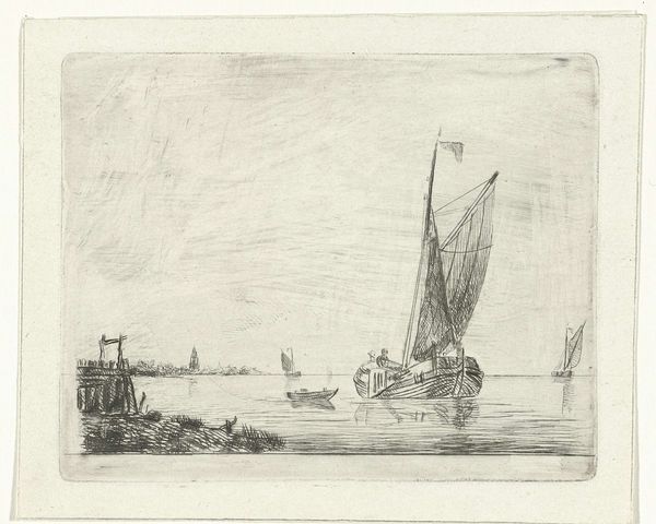 This delicate etching, "Vier mannen in sloep" was created by Willem Gruyter Jr. in the 19th century, using a copper plate. The lines you see were made through a labor-intensive process. The artist would have coated the plate with a waxy, acid-resistant ground, then scratched an image into it with a needle. Finally, the plate would be bathed in acid, which bites into the exposed metal, leaving behind incised lines. In this print, the fineness of the lines evokes a sense of detail and depth. Look closely at the textures of the water and the wooden boats; the linear marks create tone, volume and shadow, to describe the scene. Like other kinds of prints, etching was a democratic medium, capable of circulating images widely. In this case, the scene suggests the rise of leisure time during the industrial era. Consider the skilled labor and the social context embedded in the work. It challenges us to expand our understanding of art, by looking beyond traditional boundaries.