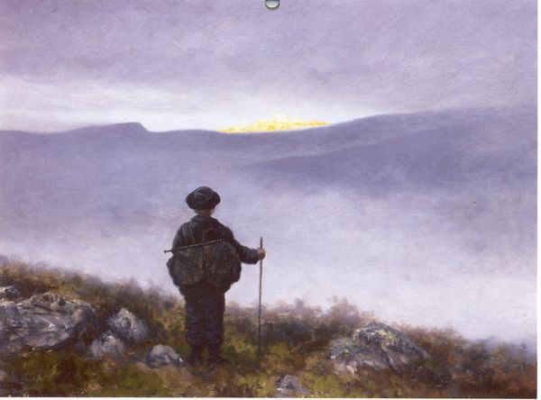 In June of 1854 Frederik Vermehren met this 82-year-old shepherd on the Jutland moors. He wandered, knitting, among the flowering heather with his sheep, his only company the dog resting at his feet. Over the next few months this fortuitous encounter gave rise to one of the principal rural scenes in Danish art history. Man's affinity with nature Working his way through several pencil and painted studies, Vermehren slowly approached the final incarnation of the scene which is about much more than simply the old man on the moors. Taking the mundane scene as its point of departure, the picture before us is a rendition of man’s affinity with nature, of a simple life lived in harmony with nature and the God whose presence is felt in the grand landscape. A metaphysical dimension The picture’s feel of having a metaphysical dimension is largely the result of the intensified light, the endless landscape, and – more specifically – the barrows in the background. Eckersberg's view of art Within art history Vermehren is often referred to as a conservative guardian of the status quo. This is a consequence of the views he expressed during his many years as a professor, concluded with his retirement 1901: He unfailingly insisted on a view of art that originated with C. W. Eckersberg (1783-1853) in the beginning of the century. Thus, younger artists regarded him as a relic from days gone by. Back in the 1850s, however, Vermehren belonged to the progressive wing within Danish art and was one of the most active figures in the first rebellion against the Royal Danish Academy of Fine Arts’ resistance to change.