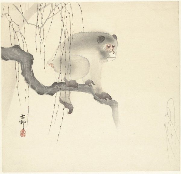This woodblock print by Ohara Koson delicately portrays a mother monkey and her child, rendered with a tender realism. In East Asian cultures, the monkey has complex symbolism, ranging from mischievousness to protective, parental love. Observe how Koson captures the tender, vulnerable gesture of the mother carefully helping her child. This protective pose echoes across centuries; recall the motif of the Madonna and Child. Consider the inherent drama and emotive power embedded in the simple act of reaching out, a gesture laden with primal significance. From ancient myths to Renaissance paintings, we see echoes of this motif, each iteration layering new cultural meanings onto the old. The motif of maternal care is a testament to the enduring power of archetypal gestures, recurring across time, perpetually renewed by the human subconscious.