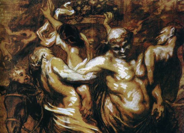 Editor: This is an Untitled work by Zdzislaw Beksinski. It’s an oil painting and there is something about the contorted figures and muted colors that feels incredibly haunting. How do you interpret this work? Curator: Beksinski’s paintings often evoke a sense of unease. In understanding his impact, it's crucial to place him within the sociopolitical context of Eastern Europe during the late 20th century. Consider the pervasive atmosphere of anxiety and repression. Does this piece feel like a reaction to that oppressive environment? Editor: It definitely feels like a visual representation of inner turmoil or some sort of unspoken pain, maybe stemming from historical context? The twisted forms feel like they are fighting something internal and external to the human form. Curator: Exactly. And the public reception of Beksinski’s art was itself a cultural phenomenon. While dismissed by some as morbid, his work resonated deeply with those who felt alienated or disenfranchised by the dominant narratives. Does the lack of clear narrative – it being untitled – contribute to its power as a projection of collective anxieties? Editor: Absolutely. By not giving a title, Beksinski allows viewers to project their own fears and experiences onto the canvas, making it a shared expression of a certain cultural experience. He isn't guiding you anywhere specific and asks that you meet the piece where you are. Curator: It’s a powerful example of how art can serve as a conduit for unspoken feelings and experiences, becoming a mirror reflecting a society's deepest fears. Editor: I hadn’t really considered the social impact, and now it highlights the cultural role of art in offering representation where words might fail. Thank you for providing a historical perspective! Curator: My pleasure. Considering the cultural milieu enriches the piece and transforms it into a social commentary.
