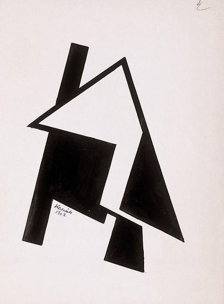 Editor: This is "Homeward" by Josef Albers, a stark black and white piece, quite graphic. It feels a bit like a puzzle; I'm curious about its message. What do you see in this work? Curator: Albers, deeply involved with the Bauhaus, consistently explored the power of visual perception. This print reflects the school's utopian vision and its impact on public education regarding art. Editor: How so? Curator: Consider its simplicity. Its abstraction was meant to be universally understood, democratizing art appreciation. How might this image function in a public space? Editor: I see it now; it’s meant to engage everyone. Curator: Exactly! Albers aimed to shape visual literacy. Editor: I appreciate the socio-political context informing abstraction. It gives the artwork another layer of meaning.