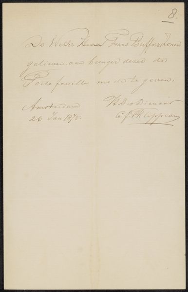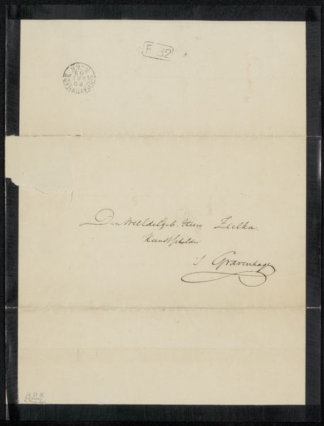 This is Adriaan Noordendorp's signature, rendered with ink on paper. The overall visual experience is one of austere formality and deliberate restraint. The stark contrast between the dark, precise lines of the signature and the muted, almost imperceptible, texture of the paper creates a composition of careful balance and structural simplicity. The signature itself acts as a semiotic marker—a symbolic declaration of identity and authority. Its flowing calligraphic style is offset against the geometric regularity of the rectangular frame, reflecting an engagement with the period's conventions of bureaucratic and artistic expression. The script, with its loops and flourishes, exists as a visual representation of the artist’s persona, simultaneously revealing and concealing meaning through its stylistic choices. The materiality of ink on paper emphasizes the enduring nature of this mark, making this piece more than a mere autograph. The act of signing becomes a performance, immortalized through this deliberate application of line and form.