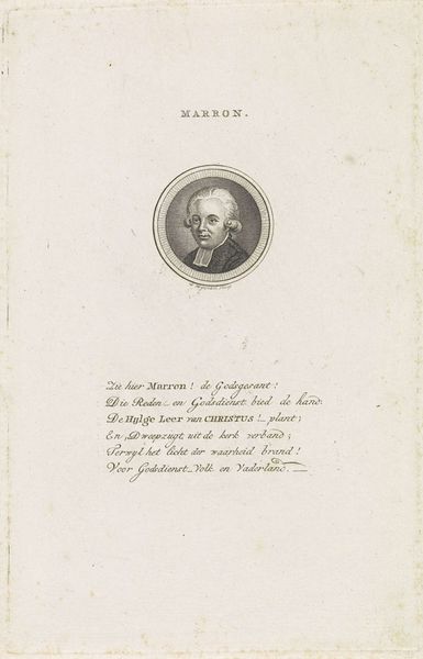 Curator: Looking at this piece, one notes how Wijsman created “Portret van Johannes Gerardus Luyken”, circa 1794-1796, using the engraving technique. The precision achieved through this printmaking medium is quite compelling. What's your initial impression? Editor: Austere, formal, but contained, wouldn’t you say? The severe neoclassical frame seems to restrict this “Fiscal Luyken” whose name is centered at the top. There's a powerful suggestion of both societal order and the personal constraints it imposes. Curator: Agreed. Wijsman’s choice to portray Luyken via engraving suggests deliberate control over representation. Printmaking at this time signified not just artistry but a means to disseminate and replicate images, making them accessible. Editor: Precisely. Consider Luyken's role: a fiscal officer, enmeshed in governance. This engraving normalizes and elevates that class through dissemination to project power through the efficient visual distribution and replication of his image within Dutch society. Curator: The hatching and cross-hatching used in engraving build a tonal depth that suggests volume despite its essential two-dimensionality. Notice how Wijsman utilizes these lines to articulate the contours of Luyken's face. Editor: Which brings us to physiognomy—popular then—linking outer appearance to inner character, doesn’t it? This engraved portrait, carefully rendered, conveys presumed traits of seriousness, responsibility. Does the engraver reproduce existing power dynamics of gender, race, and class by affirming Luyken’s official status through what Walter Benjamin famously called its "aura?” Curator: Definitely. Furthermore, looking at the material reality of this print as object shifts our focus away solely from representation toward a whole system of production. Consider Wijsman’s craft… the training, the tools...the embodied labor. Editor: I would add to that by stating that in deconstructing these traditional artworks in art history by examining these artifacts through labor, gender and societal context, we're allowing more perspectives in its reception. It lets us create spaces where different histories may connect meaningfully to challenge orthodoxies of interpretation. Curator: Indeed, such nuanced understanding reveals the convergence of process, portrayal, and its broad social context... Editor: ...yielding an evolved vision of Dutch visual history, its mechanisms of power, and ongoing dialogues shaping our grasp of portraiture to the present day.