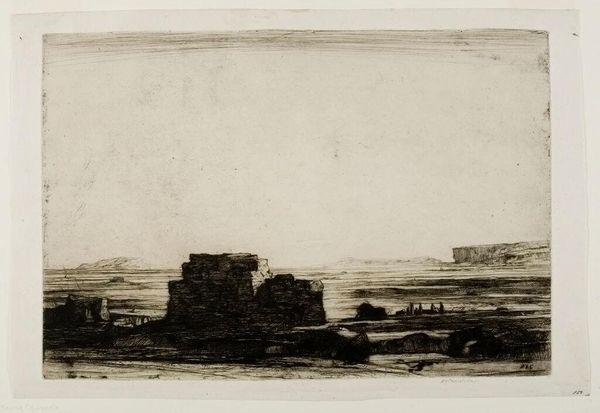 David Young Cameron created "Inverlochy", an etching that portrays the stark ruins of Inverlochy Castle against the backdrop of the Scottish Highlands. Cameron's interest in architectural subjects and landscape painting positions this work within a broader movement of Scottish art that sought to define national identity through its iconic places. The castle, a symbol of both strength and decay, prompts questions about Scotland’s past, and the social and political forces that have shaped its identity. How might we read the contrast between the enduring stone and the surrounding landscape in relation to Scotland’s complex history? Cameron invites a dialogue between the past and the present, urging us to consider how history shapes our sense of place and identity. This deeply felt connection to the land and its layered past resonates with themes of cultural memory, and the emotional weight of history.