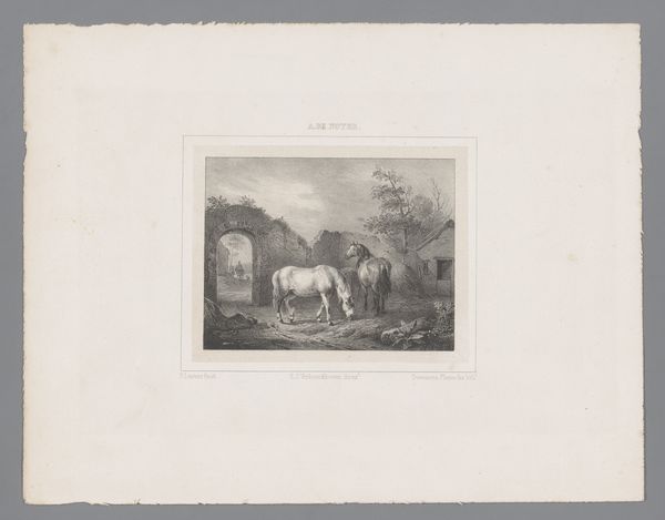 Curator: Standing before us, we have an 1856 print titled "Herderin met schapen op de vlakte van Cantal", or "Shepherdess with sheep on the plain of Cantal," attributed to Claude Thieley. It’s a beautiful landscape rendered as a print. Editor: Immediately, I get a sense of stillness, almost a sacredness, from this scene. The solitary figure of the shepherdess against that vast, quiet landscape evokes a real feeling. Curator: Indeed, this work fits neatly into the genre painting tradition, a time when there was increasing interest in romanticized scenes of rural life, emphasizing the beauty and, quite frankly, the supposed simplicity of the peasantry. The representation of women as central to these pastoral scenes played a key role. Editor: And I see her – shrouded, perhaps, a little mournful even, her posture, with her hands clasped like that—she almost merges with the sheep, part of this bleak yet serene landscape. Are they as lonely as I am? Curator: You’ve keyed in on an important intersection here— the historical moment in which artists were exploring the identities of rural inhabitants alongside the increasing visibility, and perhaps exploitation, of the land. The image can prompt thoughts about labor, gender, and the environment. Editor: The tonal quality is soft, lending an almost dreamlike quality. It’s far removed from the harsh realities that women in her situation would have actually faced. Maybe that’s the point, or is it? Curator: Precisely! Consider this as a dialogue—the romanticized vision and the lived experiences – creating meaning beyond the idyllic facade. Editor: Makes you think, doesn't it? Curator: It does. Hopefully, listeners will also be spurred to ponder these nuances and historical intersections. Editor: It makes me want to paint. What else is there to say?