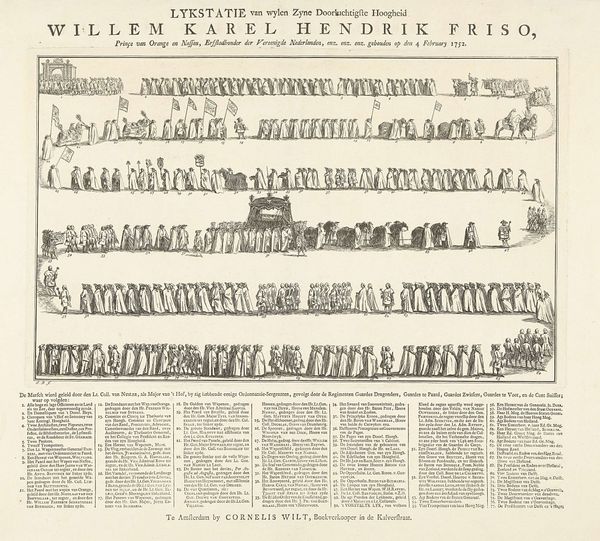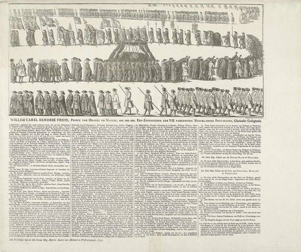 This print, depicting the funeral procession of Prince Maurits, was made in 1625 with engraving. It's a technique where lines are incised into a metal plate, which then holds ink and transfers to paper. The material of the print itself – paper – speaks to its function. It's a relatively inexpensive medium, which allowed for the wide dissemination of imagery. This particular image, with its meticulous rendering of the social hierarchy through rows of figures, emphasizes the Prince's status through the labor required to create and distribute such imagery. Consider the work involved: the engraver's skill, the press operator’s effort, and the distribution networks necessary to get this print into the hands of many viewers. All this labor underscores the power of the Prince. So, next time you look at a print, don’t just see an image. Think about the processes and social context that brought it into being, and what these tell us about the relationship between art, labor, and power.