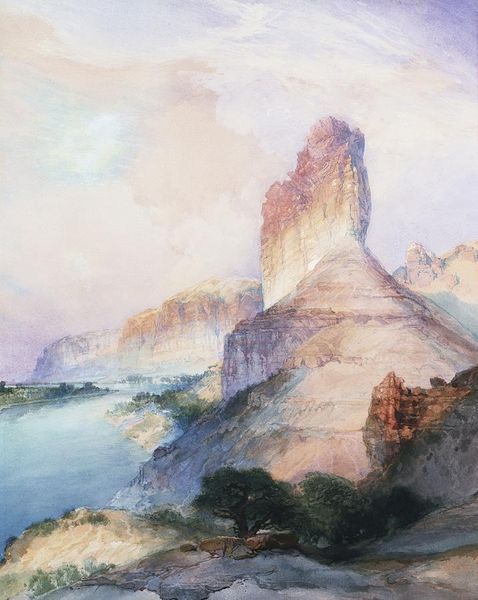 Thomas Moran made this painting, *An Indian Paradise,* with oil paint. He wasn't trying to capture a real place; he was creating an experience for the viewer. There’s a soft, dreamy quality to this landscape. Look at the brushwork – feathery, light touches that build up the forms of the mountains and trees. The colors are muted, like a faded memory. It’s less about detail and more about capturing a feeling, an idealized vision of the American West. Check out the way Moran handles the light reflecting on the water. It’s almost shimmering, isn't it? The small strokes of white and blue give it this lively, pulsating energy. The figures on horseback in the foreground are small and indistinct. They melt into the landscape. Moran's work reminds me of Albert Bierstadt, who also had a real flair for the dramatic. But where Bierstadt goes for grandeur, Moran is all about the mood. There's no single way to see this painting. It's a space for dreaming, imagining, and getting lost.