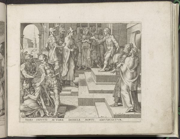 Curator: Looking at "Gevolgen van Rijkdom," or "Consequences of Wealth" by Philips Galle from 1563, one cannot ignore how meticulously the artist renders the scene with such fine lines through engraving. It has such a narrative density. Editor: Yes, the sheer detail is remarkable! It's almost overwhelming at first glance. All those figures vying for attention around this central, wealthy-looking man… there’s a definite sense of chaos, but also something alluring. What symbols are catching your eye here? Curator: It is not so much individual symbols but the relationship *between* them. See how Honour, symbolized by the incense and classical figure on the left, presents itself to Wealth. And yet, even as Fame trumpets this wealth on the right, there is Vanity whispering promises. This image really unpacks the ephemerality of earthly possessions. Does that ring true to you? Editor: It does. Seeing them presented almost as fleeting, fading figures… especially the smoke representing honour disappearing so quickly. So, would you say that the intention here is moralizing, reminding viewers of their own mortality and of the perils of earthly indulgence? Curator: Precisely! These scenes were often aimed to remind the viewer of the transience of earthly riches and glory, prompting introspection about what truly lasts, about building lasting legacies through civic duty, rather than hedonistic excess. Do you think we’re accustomed to these stark reminders in art today? Editor: Not necessarily as blatant. There are subtle reminders but not as clearly defined figures as in Galle's time. But that makes older works that much more fascinating. This work offers not only a historical snapshot but a meditation on values. Curator: Absolutely, a timeless cultural echo. What stays with me is the snake biting at Fame and the little figures who are waiting in the lower portion; so haunting, even centuries later.