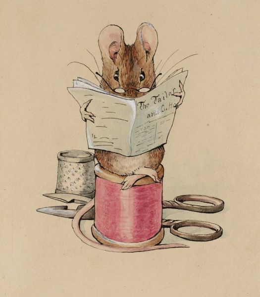 Editor: Here we have "Two Mice," created in 1594 by Joris Hoefnagel. It looks to be rendered in watercolor. There’s something so delicate and yet… a bit unsettling about it. The one mouse seems almost proud as the other melts in to the canvas! What do you see in this piece? Curator: Well, immediately I consider the context in which Hoefnagel was working. This was a time of burgeoning scientific inquiry, yet also a time when animals were heavily laden with symbolic meaning. Consider the Latin inscription, "MVS NON UNI FIDIT ANTRO" above, what might it suggest about trust and deception during a politically turbulent period? The role of imagery wasn’t merely decorative, it was often deeply intertwined with political and social commentary. Editor: So you're suggesting this seemingly simple depiction of mice could be commenting on something larger about society? The role of 'mice' as 'sneaks?" Curator: Precisely. Natural history illustrations were highly prized, but were more than objective records. Who controlled the creation and dissemination of these images and what biases might they contain? Think about the social anxieties prevalent in 16th century Europe – anxieties about social order, about health. Mice, as carriers of disease, could easily become metaphors for broader societal ills. Also, this artwork ended up at the Rijksmuseum... What social forces were at play when it ended up in its public collections? Editor: That is interesting… It’s amazing to think this cute painting could be tied into the wider issues of the time. Thank you for enriching my knowledge of social studies through this artistic piece! Curator: My pleasure. Reflecting on these points can really deepen one’s appreciation, no? Every artwork has stories and insights!