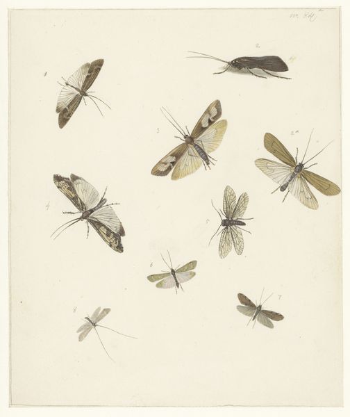 Editor: Here we have Albertus Steenbergen’s "Studie van twee libellen," or "Study of Two Dragonflies," created sometime between 1824 and 1900. It’s a delicate watercolor and drawing. I’m struck by the realism – how meticulously the artist captured the dragonfly's form. How do you interpret this work? Curator: It’s fascinating how Steenbergen uses the guise of naturalism, characteristic of the period, to make these dragonflies appear almost like specimens under a microscope. But what if we consider the cultural context? The 19th century witnessed a surge in scientific exploration alongside burgeoning colonial expansion. How might this drive for categorization and control reflect a broader societal impulse to dominate the natural world, and perhaps, by extension, non-European populations? Editor: That’s a powerful interpretation. So, you’re saying the act of studying and depicting nature can also be seen as an act of asserting control? Curator: Precisely. Consider how these insects are presented. They're isolated, devoid of habitat, pinned down, metaphorically if not literally, for observation. Is this a neutral act of scientific documentation, or a demonstration of power? Furthermore, the availability of these images may not have been the same across society, thus influencing societal attitudes. How would access change opinions towards the environment in our current climate crisis? Editor: It’s eye-opening to think about naturalism with those socio-political implications in mind. I initially saw only the beauty of the illustration, but I now also see a complex commentary on humanity’s relationship with nature. Curator: Exactly. Art serves as an archive, capturing not just appearances, but the complex and often contradictory ideologies of its time. Editor: I will never look at naturalistic illustrations the same way! Thank you.