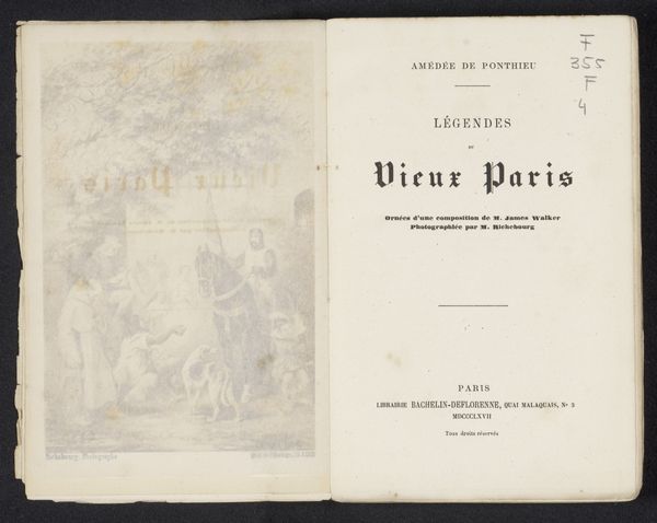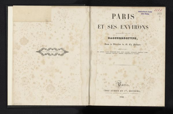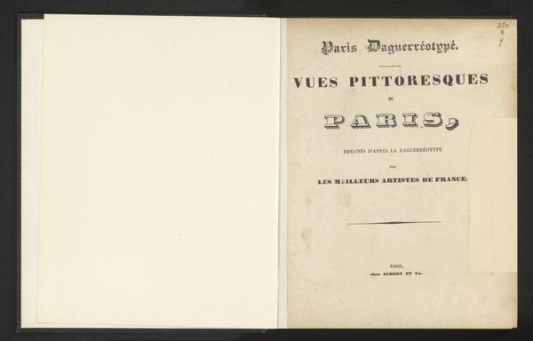 This is the cover of "Hôtel de Ville de Paris" by Auguste Jeunesse, published in 1863. The book cover presents a study in contrasts using type. The left side is a blank canvas; by comparison, the right side’s surface is densely arranged with text. The layout employs a hierarchy of type sizes to guide the eye, moving from the grand declaration of ‘L’Hotel de Ville DE PARIS’, to the more modest attribution ‘PAR Aug. JEUNESSE.’ This structured arrangement—the title’s grandeur versus the author’s subdued credit—creates a visual tension, hinting at the book's contents. The cover thus performs a dual function: it marks the identity of the book while also serving as a cultural artifact that reflects the semiotic codes of its time. It invites us to interpret not just its aesthetic appeal, but the layers of meaning embedded in its design and the historical context from which it emerges.