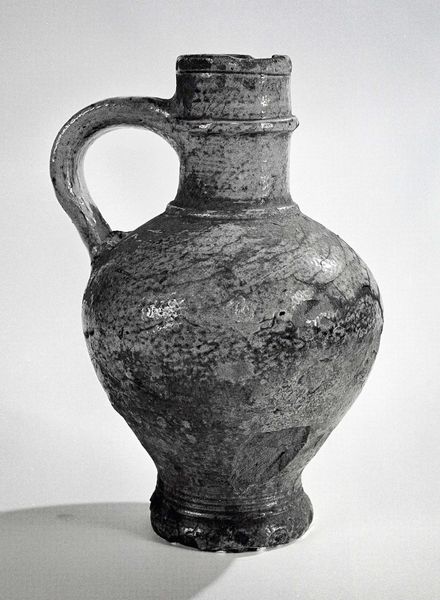Editor: This "Water Jug" is by Tō Kai Ko and it was crafted sometime between 1871 and 1899. It looks like it is made of earthenware and stoneware. What intrigues me the most is how tactile it seems, you can almost feel the texture just by looking at it. What's your perspective? Curator: This piece, rooted in the Meiji period, speaks volumes about Japan's shifting relationship with industrialization and its own cultural identity. The "drip" effect, almost like molten metal, challenges traditional notions of perfect craftsmanship. Don’t you think the way this earthenware and stoneware were treated pushes it from a simple water jug into a study of materiality and the process of making? Editor: I see what you mean. So it's less about the "water jug" aspect and more about what the materials themselves are saying? Curator: Precisely! Consider the labor involved in sourcing the clay, the firing process itself. How was this clay sourced, shaped and altered? Each step reveals the hands that shaped it, literally and figuratively embodying the era’s negotiation between artistry and production. Does that change how you see the “water jug”? Editor: Definitely. I hadn't considered the journey of the materials themselves. I was too focused on it as a functional object. It makes you appreciate how everyday objects can embody complex social and economic shifts. Curator: It’s about elevating the status of this object from mere craft to art, challenging us to reconsider the value we assign to labor and the materials themselves. Editor: Thank you for highlighting the interplay between materials, making and societal context! I'll certainly look at art with new eyes going forward!