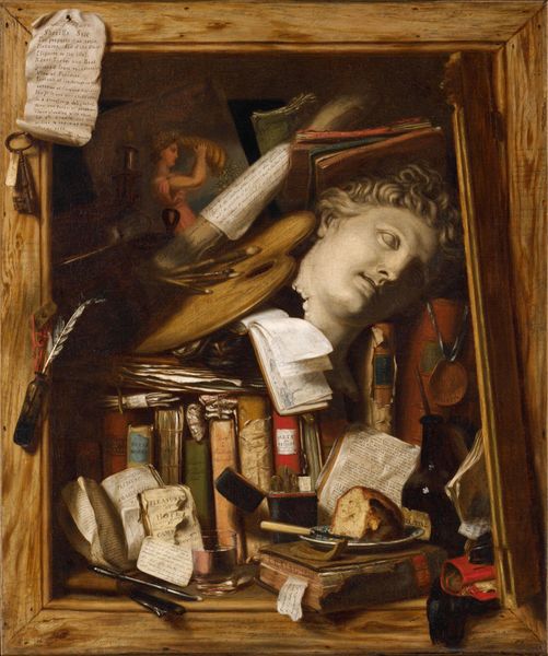 Charles Bird King made this oil on canvas, Poor Artist's Cupboard, sometime in the first half of the 19th century. It's a still life representing the supposed possessions of a poor artist. But what does it mean to be poor? And how does one signal that status in a painting? Here, King seems to be reflecting on the relationship between material scarcity and intellectual or artistic wealth, a popular theme during the Romantic era. The items in the cupboard—books, papers, a half-eaten loaf of bread—suggest the artist's intellectual pursuits and humble lifestyle. Note the book titled "Advantages of Poverty." Made in the United States, the work can be understood in the context of the country’s burgeoning art scene, where artists often struggled to gain recognition and financial stability. Was this a reflection of King's own experience? As art historians, we can look to letters, exhibition reviews, and other primary sources to understand better the economic realities of artists in the 19th century. By examining the social and institutional context in which art is made, we gain a richer understanding of its meaning and significance.