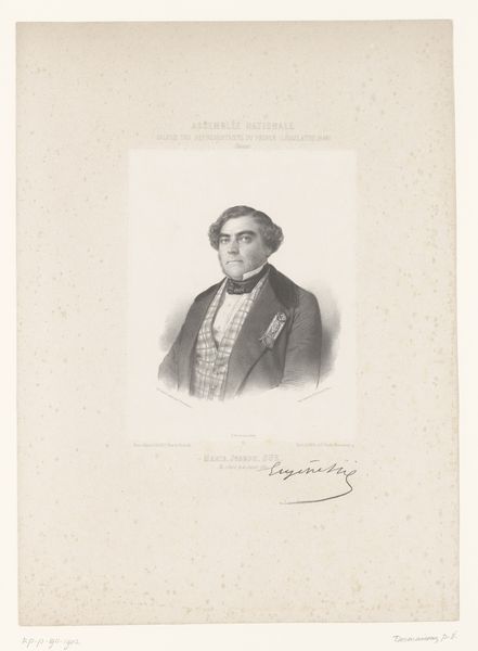 Curator: This is Leendert Springer's "Portret van Gerard Sandifort," created around 1850. It’s a pencil drawing, showcasing the academic realism popular at the time. What are your initial impressions? Editor: Striking. There's a certain austerity in the stark contrasts, a somber mood emanating from the muted palette. It's fascinating how much depth he achieves with just pencil strokes. Curator: Absolutely. Considering Sandifort was a professor of anatomy and surgery, one wonders about the implications of this portrait. Academic circles, even medical ones, were not free from the same restrictive social codes for whom had the power to be documented visually. Who was seen and how... Editor: A valid point. And Springer really captures the formality of the era through meticulous detail. Look at the layering of his garments. The velvet collar suggests wealth and status while drawing focus to the sharp contour of the sitter’s face. It invites decoding of character through physiognomy. Curator: The historical context deepens the work. The subject, Gerard Sandifort, occupied a privileged position as the Leiden University's professor and as son of the chair’s prior occupant. It brings into consideration questions about institutional power structures within academic and scientific elites of the time. A man literally cloaked by access. Editor: Indeed. And even beyond, Springer's skillful rendering, utilizing a play of light and shadow that provides the piece an inner liveliness beyond a flat record, lends an engaging presence. I note particularly, too, that the light, glancing from the side, enhances depth and invites investigation. Curator: It asks who are deemed worthy to be made iconic and elevated to visibility via portraiture? In doing so, it unveils the implicit biases that shaped historical narratives. I am most curious about this representation within the narratives of art as document, and its reproduction within academic circles. Editor: It all seems, after our discussion, less cold, much more nuanced, despite the graphic medium. Curator: I agree. Considering the socio-political circumstances behind art's visibility, or invisibility, provides this "Portret van Gerard Sandifort" another depth altogether.