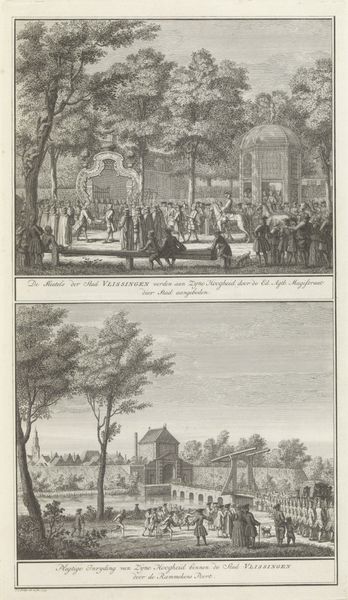 Cornelis Brouwer’s etching from 1788, depicts an incident involving the French ambassador’s hunter in The Hague. The chaotic scene is rich with symbols of social unrest. Observe the figure of the hunter, set against a mob. The crowd is a recurring motif throughout history, from ancient Roman riots to the French Revolution, embodying both destructive potential and the promise of collective action. Think of how the depiction of crowds has changed—from orderly masses in classical art to frenzied gatherings. Such imagery taps into primal fears and desires related to social order. This emotional charge is not new; it echoes in art across eras. The composition ignites our subconscious understanding of power dynamics and social upheaval, resonating with a collective memory of historical conflicts. This visual language resurfaces, evolves, and acquires new meanings, reflecting shifting cultural anxieties and aspirations.