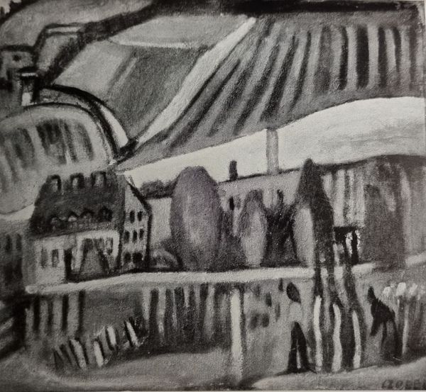 Curator: Martyl Langsdorf's "Market Place No. 2, Barcelona," created in 1955, offers a fascinating glimpse into postwar Europe. Editor: It feels bleak, almost post-apocalyptic, despite being a marketplace. The monochromatic charcoal amplifies the rough work; the composition feels intentionally disordered. What strikes you most about it? Curator: The portrayal of urban life immediately stands out. Post-war Barcelona experienced rapid industrialization and social change. This market likely served as a crucial space for working-class communities. I see it reflecting the complexities and tensions inherent in that period of transformation. Editor: Absolutely. You see that echoed in the use of charcoal itself. Langsdorf seems less interested in clean lines and precise representation. It's all smudges and layered textures, echoing the grit and labor involved in creating and maintaining such a space. It makes me think of the workers' hands that built and sustained it. Curator: Indeed. This marketplace wasn't merely a place of commerce; it was a social hub where ideas and cultures intersected. Charcoal, as a readily available and relatively inexpensive material, democratizes art-making in some respect. Editor: I wonder about her choice to depict it with this derelict sense. Was she interested in the market as a center for community, or something else? There’s something almost alienating about how the scene’s represented here; as if it's already half abandoned or on the way to dereliction. Curator: Perhaps a critique of rapid urbanization. Sometimes what gets left behind in that process, especially community spaces like marketplaces which are, ironically, necessary for urbanization to happen in the first place. It really highlights how art shapes perceptions of our environment. Editor: True. Seeing it like this makes you think about all of the unseen hands and processes that come into play to create a bustling marketplace. Everything from material sourcing to construction to day-to-day life in and out of the marketplace that are reflected through the medium’s marks, erasures, and densities. Curator: Thinking about it, it is so interesting how a scene, typically associated with trade and communal exchange, becomes an illustration about society and societal change. Editor: Right. Art offers an entryway into these societal structures to examine how and why they endure in the face of cultural shifts and developments.