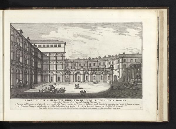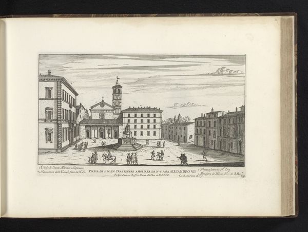 Editor: This engraving by Giovanni Battista Falda, dating back to 1665-1667, captures the Piazza della Minerva in Rome. The stark lines and precise detail create a really interesting, almost documentary feel. What stands out to you about this cityscape? Curator: As a materialist, I'm immediately drawn to the processes behind creating an engraving like this in the 17th century. Think of the labor involved – the artist meticulously carving into a metal plate, a process entirely reliant on skilled handiwork. Doesn't considering the economics of printmaking in that era—the costs of materials like copper, the accessibility of the final image to the public—shift our perspective? Editor: It definitely makes me consider the purpose of creating multiple copies, making this image more accessible, like printed news from the period, for instance. So, how might the economics shape what’s depicted? Curator: Absolutely. We must remember, images of this kind weren’t neutral records. Falda’s depiction emphasizes the church and the obelisk, signs of papal power and authority. The engraving process, in itself, a form of early mass production, disseminated these emblems far and wide. Who benefits from this wider view? Editor: So you are saying the Church literally distributed its brand in order to gain support... Curator: Precisely. It cleverly converted public space into symbolic real estate, disseminated through this easily-replicated, relatively low-cost medium. What looks like a simple city view is a potent statement about power and production in Baroque Rome. Editor: Thinking about the print as an object with a context, beyond just a picture of a place, adds another layer of appreciation for the art of this historical period. Curator: Agreed. Understanding the means and motivations behind production gives us a more complete view of the artwork itself, and the social conditions from which it emerged.