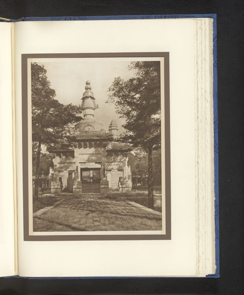 Editor: This is a photograph entitled "Decoratie van de punt van een minaret van de Muhafiz Khan-moskee in Ahmedabad," taken before 1866 by Thomas Biggs. It features detailed architectural elements. What strikes me is how solid it looks, despite the incredibly ornate carvings. What do you make of it? Curator: It's interesting that you say it feels solid. To me, the photographic image captures not just the stone itself but also the enduring cultural memory embedded within this minaret. Consider its form, rising skyward. Do you think that this reaching gesture is a purely decorative feature or symbolic, too? Editor: I suppose it suggests a reaching toward something…spiritual? Curator: Precisely! Minarets historically act as a visual call to prayer, reminding the viewer, regardless of their faith, of a communal connection to something greater than themselves. The intricate decorations, almost dizzying in detail, also suggest a rich inner world of faith. The stone, static, immovable—becomes a visual representation of spiritual ascension. Editor: So, the symbols are kind of doing double duty: architectural and spiritual? Curator: Indeed. The visual language becomes a bridge between the earthly and the divine. Do you think photography adds to the cultural significance of the work? Editor: I think it does. Photography, as a mode of documentation, offers a new lens. It captures cultural treasures, creating lasting visual records. Curator: A compelling perspective. It allows for wider access, preserving these intricate symbolic narratives for future generations. The photograph becomes its own symbol of cultural continuity. Editor: I didn’t expect a single image to hold so many layers of meaning! Thanks for pointing those out. Curator: It’s these layers that connect us to history, memory, and the power of symbolic imagery.