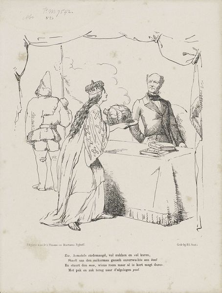 This 1867 print by Johan Michaël Schmidt Crans depicts a meeting between Van Zuylen and Napoleon III. Both figures are conspicuously dressed in Roman attire. The laurel wreath upon Napoleon's head immediately marks him as a Caesar, a symbol of power and authority harking back to ancient Rome. This deliberate invocation of Roman iconography is fascinating. Consider how the imagery of the Roman Empire has been repeatedly revived throughout history, each time adapted to reflect new political realities. Napoleon III, in adopting this symbol, consciously aligns himself with the grandeur and dominion of Rome, seeking to legitimize his own imperial ambitions. Yet, this appropriation is never straightforward. The laurel wreath, once a symbol of triumph and imperial glory, carries the weight of history and the shadow of fallen empires. This print taps into a collective memory, a shared understanding of the cyclical nature of power, and the inevitable decline that follows the rise. The artist subtly questions the stability of Napoleon III's regime by casting him in this light, engaging us on a subconscious level with the transient nature of power.