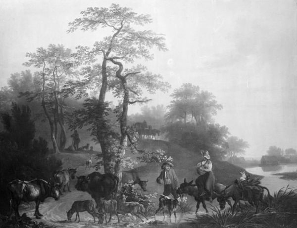 Editor: This ink drawing on paper, called "Tussebryllup" by Theodor Kittelsen, presents a ghostly gathering in a stark, black-and-white landscape. It has an eerie, dreamlike quality, particularly with those figures emerging from the mist. What do you see in this piece that maybe I'm missing? Curator: Immediately, the symbolism jumps out. This isn't just any gathering; it's a wedding, and the 'Tusse' suggests we're dealing with the Hidden Folk of Norse legend. Consider the crown on one of the figures – royalty, perhaps? These beings often represent untamed nature, powerful forces, and hidden aspects of the self. Editor: So it's about more than just folklore? Curator: Absolutely. Kittelsen wasn't merely illustrating tales; he was exploring the cultural memory embedded within those tales. Notice the dark landscape— a signature of Romanticism—a reflection of inner turmoil, the darker side of the human condition. Editor: I see what you mean. There's a real sense of foreboding. Curator: The forest itself is a potent symbol: a space of both danger and potential transformation, a doorway to the subconscious. It might also be viewed as nature resisting industrial encroachment during that era. Editor: It’s interesting how the image operates on so many levels – a story, a cultural commentary, and something deeply personal. Curator: Indeed. Kittelsen masterfully weaves these threads together, leaving us with a work that continues to resonate with its primal power, connecting us to our ancestral past and inner psyche. Editor: I’ll definitely look at Kittelsen’s art differently now. Thank you!