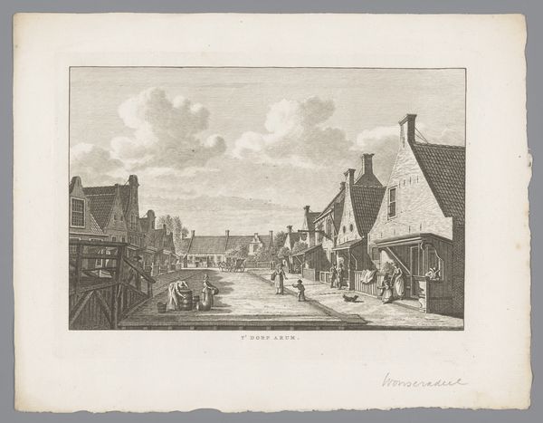 Carel Frederik Bendorp made this print of Makkum from the Grote Zijlroede in the Netherlands, sometime around the late 18th century. It offers a glimpse into the economic and social life of a Dutch town during a period of significant change. Notice the bustling activity around the canal, the heart of Makkum's trade and transport. The architecture speaks to the town's prosperity. Bendorp's choice to depict this scene highlights the importance of maritime commerce to the Dutch economy. Prints like this one also played a role in shaping civic identity. They circulated as tokens of local pride and as documents of Dutch industriousness. To fully appreciate this print, consider researching the economic history of the Netherlands during this era and the role of prints in shaping public perceptions of labor and trade.