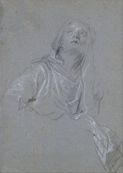 Giovanni Gerolamo Savoldo created this chalk Study of a Head in the 16th century in Italy. The head is tilted back, eyes closed in what appears to be a moment of introspection or perhaps surrender. During the Renaissance, the male gaze dominated artistic representation, often objectifying its subjects, with the identity of the model and their emotional experience typically secondary to idealized beauty or allegorical meaning. Savoldo's study deviates from this norm through its vulnerable portrayal of the sitter. We might consider the quiet dignity of this work, particularly in contrast to the often grandiose and heroic depictions of men at the time. The choice of chalk, with its soft, yielding quality, further emphasizes the intimacy and transience of the moment. The study leaves us with an enduring impression of humanity, inviting a connection that transcends the boundaries of time.