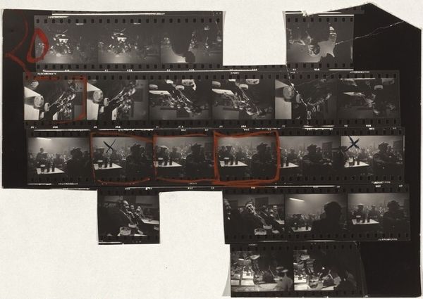Editor: This is Robert Frank's "Casino—Elko, Nevada," a gelatin-silver print from 1956. It’s quite a gritty, intimate look at a gambling scene. What really stands out to me is how the blurred motion gives you a sense of being right there in the middle of the action. What strikes you most about this piece? Curator: Frank's work from "The Americans" is pivotal for understanding post-war American identity, particularly in the context of burgeoning consumer culture. This image, with its off-kilter composition and high contrast, shatters the romanticized vision of the American Dream. Consider how the casino becomes a stage for anxieties around wealth, risk, and social mobility. Editor: So you're saying it's more than just a snapshot of people gambling? Curator: Precisely. Think about the year, 1956. It was a time of Cold War anxieties and nascent Civil Rights movements. This photograph, by showing a raw, unglamorous depiction of leisure, challenges the dominant narrative of prosperity and contentment that was so prevalent in mass media. Who is allowed to participate in this "American Dream," and at what cost? What do you think of the figure’s intensity? Editor: I see it now. The intensity on his face does suggest there’s more at stake than just a game. He's not just enjoying himself, it is the look of struggle. It reflects social anxieties, I hadn’t quite appreciated that. Curator: Exactly. The photograph invites us to critically examine the socio-political context and the power structures embedded in seemingly everyday scenes. It certainly moves beyond merely documentary, right? Editor: Definitely. Now I see Frank using this intimate portrayal to comment on broader issues within American society. Thanks for opening my eyes.