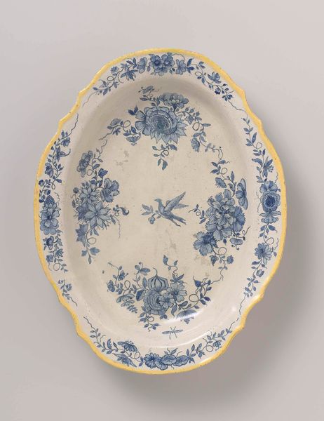 This shaving basin was made by Pieter van der Hoeven, but the exact date remains a mystery. This Delftware piece gives us a glimpse into the rituals of grooming in the past, hinting at the relationship between personal care and social presentation. Consider the act of shaving, traditionally associated with masculinity and performed to adhere to certain societal expectations. The basin, adorned with delicate blue floral patterns and a central landscape scene, creates an interesting tension. Does it soften the masculine act of shaving with its gentle decoration, or does it elevate this daily routine to something of beauty and refinement? The imagery on the basin offers an interesting intersection of art and life. What stories do you imagine unfolded as someone prepared themselves, looking at these images in the mirror's reflection? How did this basin shape their understanding of themselves in relation to society's expectations? This object quietly reflects the intimate and often unspoken negotiations of identity.
