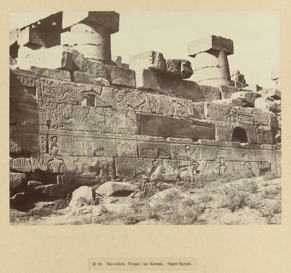 Curator: This gelatin-silver print, taken in 1903 by Richard Sochor, is entitled "Rotsgraven van Benei Hezir en Sint-Zacheria, Kidron-dal" or, in English, "Rock tombs of Benei Hezir and Saint Zachariah, Kidron Valley." Editor: A valley of the shadow of death! I'm getting a serious ancient vibes; so silent, sturdy, and melancholic. You could almost feel the weight of history bearing down. Curator: Exactly. This image captures a very specific cultural fascination of the time: Orientalism. We see how European photographers were drawn to the Holy Land, documenting ancient sites and biblical locations like this, but of course filtered through their own cultural lens. Editor: Those rock-cut tombs are incredible. Look how seamlessly they emerge from the stone; nature and art blending, aging together. It is not about death in this scene, but how things exist. The stairway to Heaven, so to speak. Curator: The tombs themselves, particularly the Tomb of Zechariah, are significant historical sites with architectural details dating back to the Second Temple period. Photographers like Sochor were very keen on this visual record, turning these structures into orientalist landscapes. Editor: Photography transforms history into an immediate experience, doesn't it? I mean, staring at those sepulchers, I'm considering what would happen to their shapes when an earthquake happen and destroyed the whole thing. Curator: The way light and shadow are used gives the image such a sense of depth and makes the scene more inviting despite its funereal subject. Editor: Perhaps not inviting, per se... unless you’re into sepulchers. What gets me are those worn stones. Thousands of years of weather on hard rocks will turn into the sandy dust. Thinking this way is quite exciting as an artist, imagining future viewers in my art installation in one-hundred-year time! Curator: This photograph provides insight into how early 20th-century viewers conceived of biblical history, making it so appealing to visitors and local groups who might have felt some emotional, traditional connections to these locations. Editor: Seeing an image like this can make you think, doesn't it? Anyway, let us conclude here, because thinking about sepulcher would take much longer time to digest. Curator: Absolutely, it's images like this that spark deeper thoughts. Thanks for your insights.