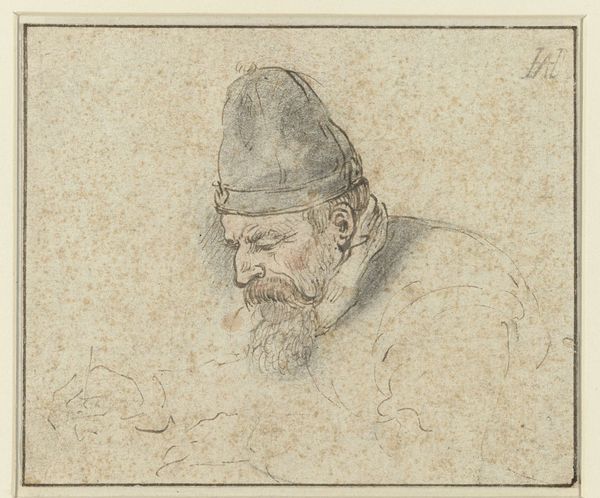 Curator: I'm drawn to the direct gaze in this self-portrait by Hans von Marées, currently held at the Städel Museum. It's rendered simply, with pencil on paper. Editor: It feels introspective, almost guarded. The soft pencil lines give it an unfinished quality, like a thought still in progress. Curator: Von Marées was certainly invested in a certain "mode of production", let's say. The very simplicity, the ready availability of pencil and paper—that's a conscious choice. He seems focused on reducing art to its basic material form and process. It's about stripping away the unnecessary to arrive at some core expression. Editor: And it allows for an intimacy. I wonder, too, about what he was grappling with in his identity and whether the medium, pencil, allowed him an avenue of rapid re-evaluation and amendment of the representation of that identity. He could use the texture of paper, too, to add subtle layers. Was the making here as vital as any finished ‘result’? Curator: Absolutely, I see this self-portrait as evidence of a very tactile creation: the pressure of the graphite, the tooth of the paper – all these contribute. Considering the social context: during this time, debates raged about the status of art and its relation to craftsmanship. His commitment to modest, readily available materials, makes me ask to what extent was this some kind of statement. Editor: Exactly. Art shouldn't be aloof but reflective of a culture's ideas. We can even read something political into that material accessibility. Art production shouldn’t be the preserve of a wealthy elite. Also, note how the gaze meets ours: it's a challenging and open exchange that invites viewers from various cultural and gender backgrounds into a discourse that extends beyond that time period. He's making himself vulnerable, perhaps, offering a view onto himself as a creative producer but also as an introspective man working in difficult cultural circumstances. Curator: Precisely. Looking at this from a twenty-first-century lens, this resonates very deeply still. The immediate qualities of materials can speak profoundly of deeper social questions. Editor: And ultimately, art history gains from dialogue, especially around intersectionality, inviting further analysis from more diverse perspectives and with evolving critical tools.