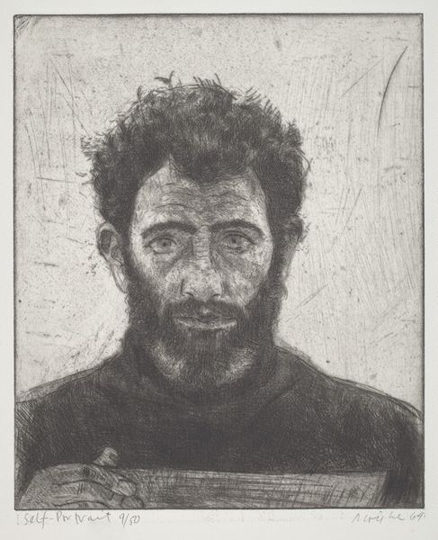 Editor: Rabih Mroué's "On Three Posters" is listed as a video work. The direct gaze and open hands create an immediate sense of vulnerability. What is he trying to convey? Curator: Mroué often explores the role of documentation and performance in constructing narratives, especially those related to conflict in Lebanon. Consider how the artist uses his own image and voice. Who is he representing, and what sociopolitical context informs this performance? Editor: So, the simplicity of the image is deceptive, reflecting deeper issues? Curator: Precisely. The seeming directness could be a deliberate commentary on how we perceive truth and representation in a media-saturated world. Editor: That gives me a lot to consider about the power dynamics at play here. Curator: Indeed. Thinking about the public role of art, how can this piece encourage us to analyze the politics of imagery?