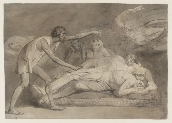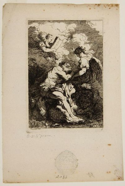 Curator: Editor: This is Jan Gerritsz van Bronchorst's "Antiope Surprised by Jupiter." It's a small print, quite dark, and the rendering of Antiope is... well, unflattering. What strikes you about this piece? Curator: I'm immediately drawn to the economics of its production. Prints like this were often made for a burgeoning middle class; consider the accessibility of the myth and the labor involved in creating multiples for consumption. How does the act of reproduction influence the value we assign it? Editor: So, you're saying its value lies in its mass production rather than its artistic merit? Curator: It's more nuanced than that. The act of reproducing images democratized art. But it also commodified mythological narratives, making them products of labor and exchange. Interesting, don't you think? Editor: I never thought about it that way. Seeing art as part of a larger economic system changes everything. Curator: Exactly! Every brushstroke, every etching line, is also a unit of labor within a market.