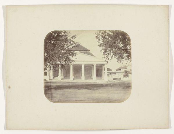 Editor: This is a photograph of Dane Hall by George Kendall Warren. It's an older building; I am curious about what this image can tell us. What do you see in this piece? Curator: I see a visual assertion of power and permanence, common in architectural photography. The classical revival style speaks of a specific historical moment and its values. Do you see the bare trees? They could represent the silencing of marginalized narratives. Editor: That’s interesting. I hadn't considered the lack of foliage as symbolic of something being silenced. Curator: Consider how the structures of power are built not just in stone, but also through images, and who benefits from the preservation of that power. Editor: Thanks, I will keep that in mind when analyzing architecture going forward.