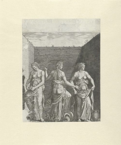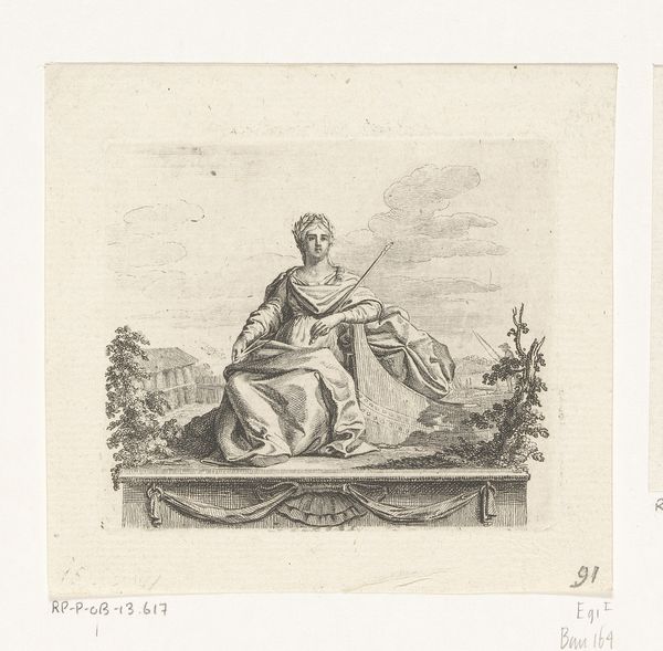 Giovanni Marco Pitteri’s etching presents us with a classical scene rich in symbolism. Dominating the composition is the laurel wreath, held aloft, a potent symbol of triumph and honor in the ancient world, often bestowed upon victors and heroes. This wreath, an emblem of glory, echoes through the ages. We see it adorning the heads of Roman emperors in their sculpted portraits, just as it crowns the poets and artists celebrated during the Renaissance. In each era, its essence remains, yet its significance shifts, molded by the cultural currents of the time. The collective memory of such symbols works on a subconscious level. The laurel wreath is a constant reminder of our human aspiration for excellence. It connects us to a lineage of individuals who have striven for greatness, engaging our emotions on a profound, atavistic level. The power of such symbols lies in their cyclical nature. They resurface, evolve, and take on new meanings, reflecting our ever-changing values and aspirations, in an eternal dance of cultural and psychological forces.