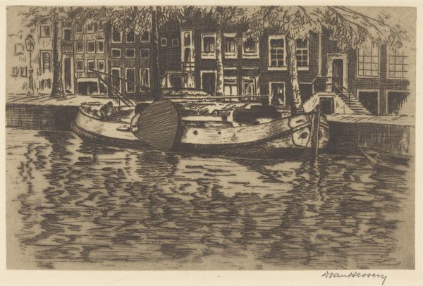 Willem Witsen made this etching of a moored sailing ship in Amsterdam. The approach here feels so process-based, not just in the mark-making but in the whole vibe, like he’s feeling his way through the scene. The textures are so rich, you can almost feel the dampness of the canal and the rough brickwork. Look at the reflections in the water, how the lines quiver and break apart, it’s like a visual echo of the city. And then there's the ship, so solid and present, with all its rigging and details. It's like Witsen is saying, "Here I am, here is the world, let's figure it out together." Notice that dark patch beneath the hull. It’s such a small detail, but it anchors the whole piece, giving it weight and depth. Witsen reminds me a little of James McNeill Whistler, another master of mood and atmosphere. But where Whistler is all about elegance and refinement, Witsen feels more grounded, more real.