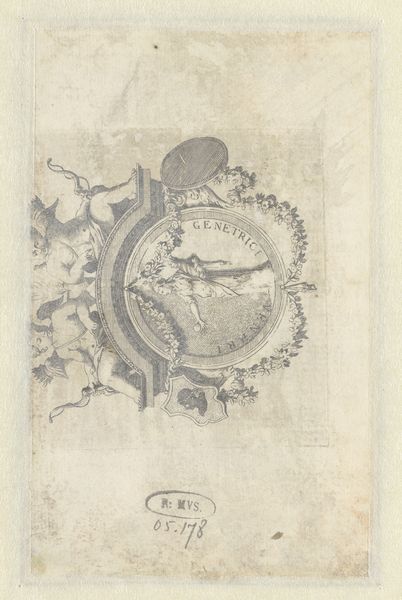 Anthonie van den Bos created this small drawing, "Landschap met hengelaar", with pen in ink, sometime in the late 18th or early 19th century. Notice how the circular composition immediately frames our view, guiding our eye through a meticulously rendered landscape. The drawing is structured around a contrast between the dense, intricate details of foliage and the stark, geometric forms of the architectural elements. The artist uses line work to define shapes, creating depth and texture. The entire scene is encased in a circle, which serves not only as a boundary but also as a lens, focusing our attention on the interplay between nature and man-made structure. This juxtaposition invites us to consider the relationship between the artificial and the natural, questioning the boundaries of space and perception. Van den Bos uses form to challenge fixed meanings, allowing the drawing to be a site of continuous interpretation.