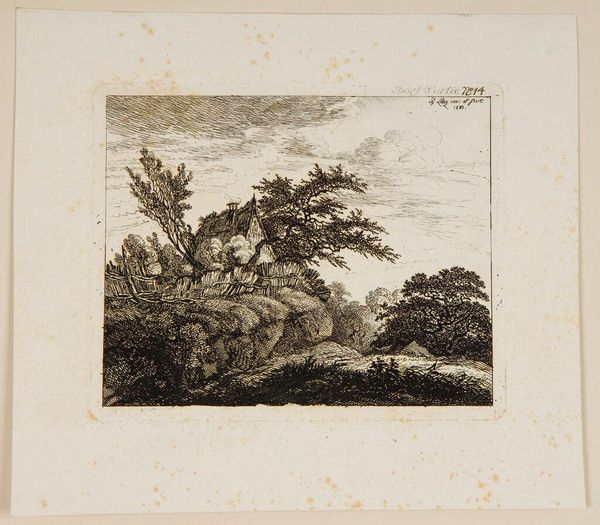 Editor: Here we have Johann Philipp Wilhelm Lenz's "Village Scene," an etching. The meticulous detail and the artist's clear effort really stand out to me. What strikes you when you examine this work? Curator: Considering Lenz’s etching, I see a commentary on labor. The texture achieved through the etching process mimics the rough, earthy quality of rural life. How does the artist's manipulation of the material, the metal plate, reflect the societal value, or lack thereof, placed on rural labor? Editor: So you’re suggesting the art itself becomes a sort of documentation, both of the scene and the labor involved in its making? Curator: Precisely! It prompts questions about the artist's relationship to the subject and the means of production. What do you think about the consumption of such images? Editor: It's fascinating to think about the layers of production and consumption embedded in this seemingly simple village scene.