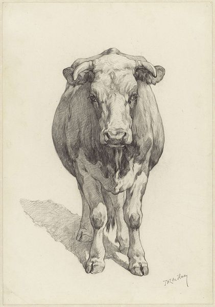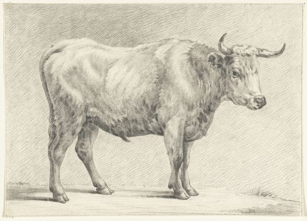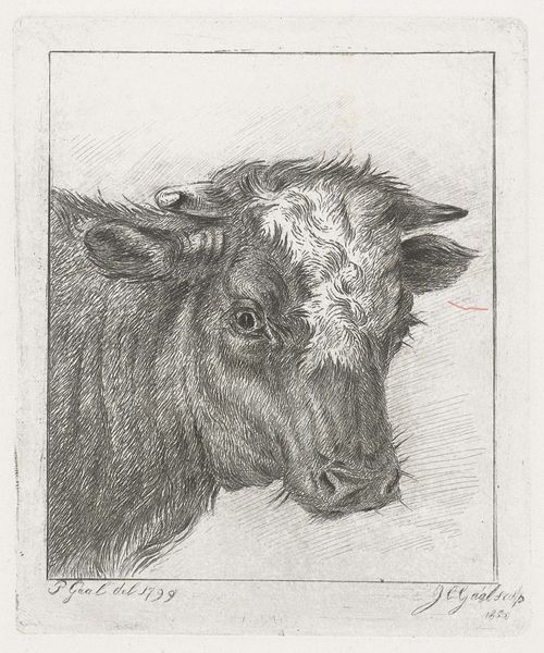 Diederik Jan Singendonck created this print of a bull, titled "Koekop," around 1813. Singendonck, born in the Netherlands during a period of significant social and political upheaval, captures the animal's likeness with striking realism. During the 18th and 19th centuries, depictions of animals, particularly livestock, served multiple purposes. They functioned as agricultural records, showcasing prized breeds and the economic importance of farming. This image is likely related to that tradition, yet it also transcends pure documentation. The bull is portrayed with dignity. The shading and attention to detail in its face evoke a sense of individuality. The artwork's emotional dimension lies in its ability to connect us with rural life. It reminds us of a time when the rhythms of daily life were closely tied to the natural world. "Koekop" invites reflection on our relationship with animals, both as a source of sustenance and as fellow inhabitants of the earth.