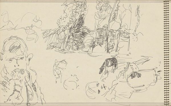 Editor: This is "Intérieur au brasero", a pencil drawing from around 1927 by Henri Matisse. It's such a delicate, almost ephemeral scene. I’m struck by how much detail is conveyed with so few lines, particularly the patterned wallpaper. What compositional elements stand out to you? Curator: The linear quality dominates, wouldn't you agree? Consider how Matisse has rendered the still life on the table. Observe the various weights and rhythms he establishes through the varying pressure of the pencil. How does this linearity contribute to the flattening of space, and what implications does this have for our understanding of depth and form? Editor: I see that, especially in how the fruit bowl seems to almost merge with the surface it’s on. So, the emphasis is more on the arrangement and the surface design, rather than creating a realistic perspective. Curator: Precisely. And notice the strategic deployment of negative space. It's not merely emptiness but an active element contributing to the overall visual balance. Where do you perceive instances of this deliberate negative space, and how does it affect your reading of the artwork's composition? Editor: I notice it particularly around the vase and the draped cloth with fruit on the table. The breathing room makes those elements feel lighter, less grounded perhaps. Curator: Exactly. That "lightness", as you call it, counters the more dense patterns elsewhere. The structural interplay creates visual interest through contrast. Does this analysis influence how you see modernist principles within the piece? Editor: Yes, I'm beginning to see it less as a simple interior scene and more as a study in form and line, almost an abstract investigation. Thank you. Curator: An apt conclusion. Our examination reinforces the power of visual language in creating an immersive and compelling composition.