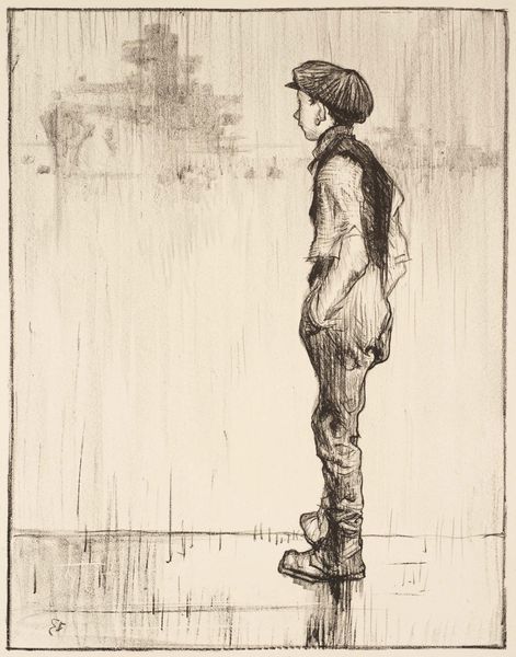 Editor: Here we have Anthon Gerhard Alexander van Rappard's "Fabrieksjongen aan het werk," made with charcoal sometime between 1868 and 1892. The scene is stark, focused on the boy’s labor. The medium really conveys the grit of the factory. What historical narratives does this evoke for you? Curator: The image places the viewer in the middle of a profound socio-economic shift. Rappard's choice of realism highlights the lived experience of the working class, particularly child laborers, at a time when industrialization was rapidly changing society. Notice how he depicts the boy not as an individual but as a figure subsumed by the machinery and the repetitive nature of factory work. It becomes a powerful comment on the loss of childhood. How do you think the image might have been received in its own time? Editor: Given the social movements that were emerging, I imagine this image could have served to raise awareness. Was Rappard known for this kind of social commentary? Curator: Absolutely. Rappard was deeply concerned with social justice and frequently depicted the lives of ordinary people, often collaborating with Vincent van Gogh on such subjects. He used his art to expose the harsh realities of poverty and exploitation. Consider the setting – the factory becomes a character itself, oppressive and inescapable. Editor: Seeing it through that lens changes things. It's not just a portrait, it’s a statement. Curator: Exactly! The artwork is a critique, urging the viewer to question the societal structures that allowed such conditions to exist. Think about how such imagery may have fueled reform movements or influenced labor laws. It reflects a specific moment, doesn't it? Editor: Definitely. I didn't realize the extent of its socio-political undertones. Now it feels like more than just an image of labor; it's an indictment of an era. Curator: Precisely! By engaging with the social and political context, art offers so much more.